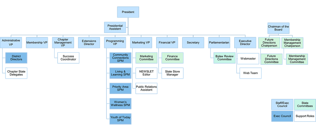 Our state organization is lead by the Executive Council who are elected and appointed annually, based on their position. The full Exec Council meets five times each year (Annual Special Exec, Fall State, Mid Year Exec, Winter State, and Annual Convention). Each Exec Council position has qualification requirements for that position. A member may serve on Exec Council for no more than eight years, excluding their year as Chairman of the Board, Presidential Assistant, District Representative/Contact, or if appointed to their position following MNJOTS.